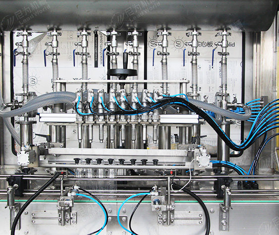 該客戶選購的是8頭濃醬灌裝機,使用伺服控制,灌裝精度0.5%~1%,料缸使用電磁閥控制液位,達到一定的量會自動關(guān)閉。軟管使用意大利進口軟管,光電使用德國勞易測光電,清洗:控制屏設(shè)有專門清洗功能,卡箍易拆易清洗,且設(shè)有防滴漏裝置。