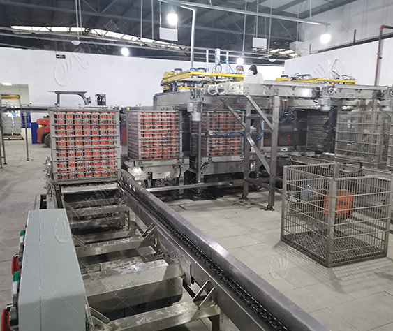 客戶的產(chǎn)品是馬口鐵罐紅燒肉罐頭,根據(jù)客戶的廠房面積、物料、包材特點及產(chǎn)量,我們?yōu)榭蛻籼峁┘t燒肉罐頭生產(chǎn)線設(shè)備(磁力空罐卸垛、空罐洗罐、輸送、提升、實罐清洗、裝卸籠、吹干、碼垛等設(shè)備),投產(chǎn)期間使用良好,后期客戶又和我司簽訂了午餐肉罐頭生產(chǎn)線設(shè)備合作。