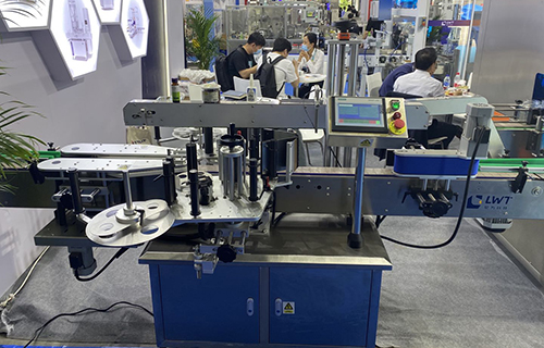 雙面自動貼標機有現場演示環節,引得很多觀眾駐足觀看。它適用于扁形、方形、圓形、錐形等塑料或玻璃的容器。可在瓶身上貼單張單面、單張三面和雙張雙面的標簽。貼標機采用同步鏈條校正機構,運行平穩、順暢。羽翼機臺可調整角度,以適應不同產品形狀特點。