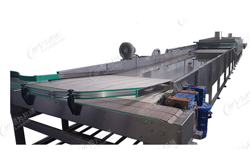 把處理好的原果一起倒入流槽內(nèi)沖洗,洗凈后立即撈出,以免清洗時間過長,可溶性果糖果酸溶出。